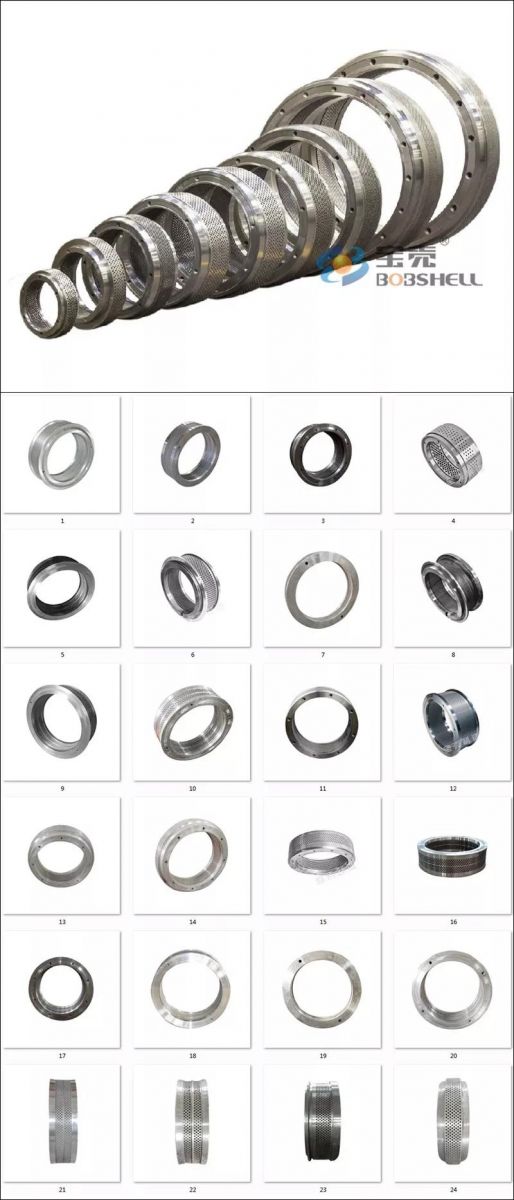 寶殼牌環(huán)模,精選國際標準鋼X46Cr13不銹鋼及優(yōu)質(zhì)鋼材為原材料,全進口高速槍鉆打孔,保證孔徑光潔度,出粒品相一流,精湛的高溫真空淬火工藝,保證模具每一個孔徑都得到均衡的硬度層,可有效延長使用壽命,生物質(zhì)顆??蛇_1000小時,畜牧飼料顆粒目前最佳使用壽命1500小時。